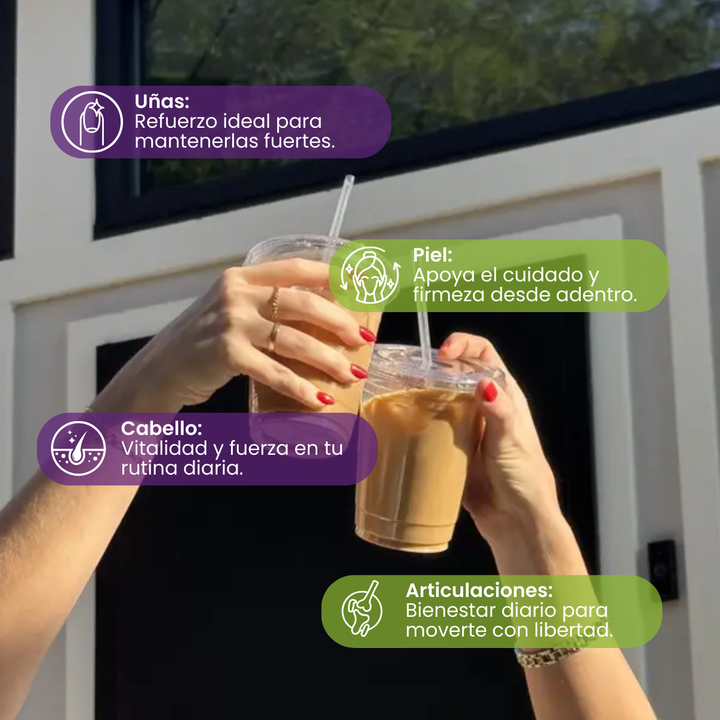 El colágeno es una proteína que se encuentra en nuestro cuerpo y es responsable de la elasticidad y firmeza de nuestra piel, así como de la salud de nuestras articulaciones, huesos, cabello y uñas.