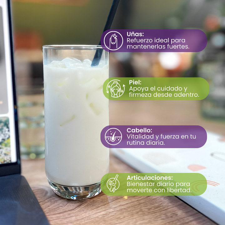 El colágeno es una proteína que se encuentra en nuestro cuerpo y es responsable de la elasticidad y firmeza de nuestra piel, así como de la salud de nuestras articulaciones, huesos, cabello y uñas.