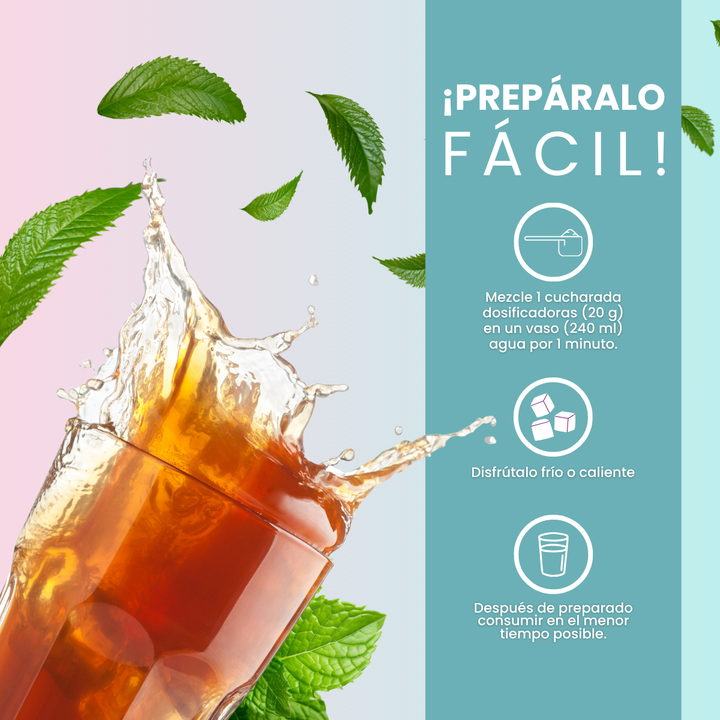 Disolver 1 cucharada (20 g) en un vaso con 240 ml de agua por 1 minuto.