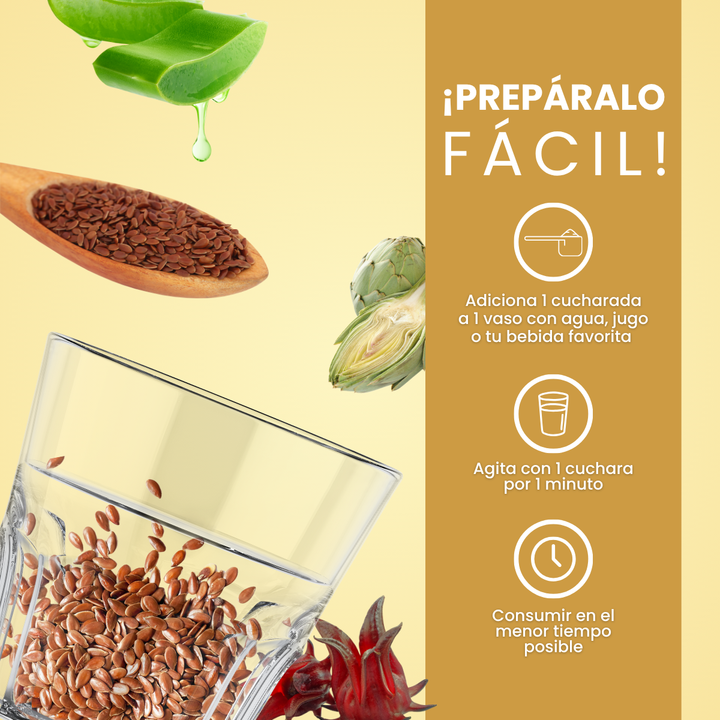 Pitahaya, Flor de Jamaica, Aloe Vera, Alcachofa, Espirulina y Stevia.